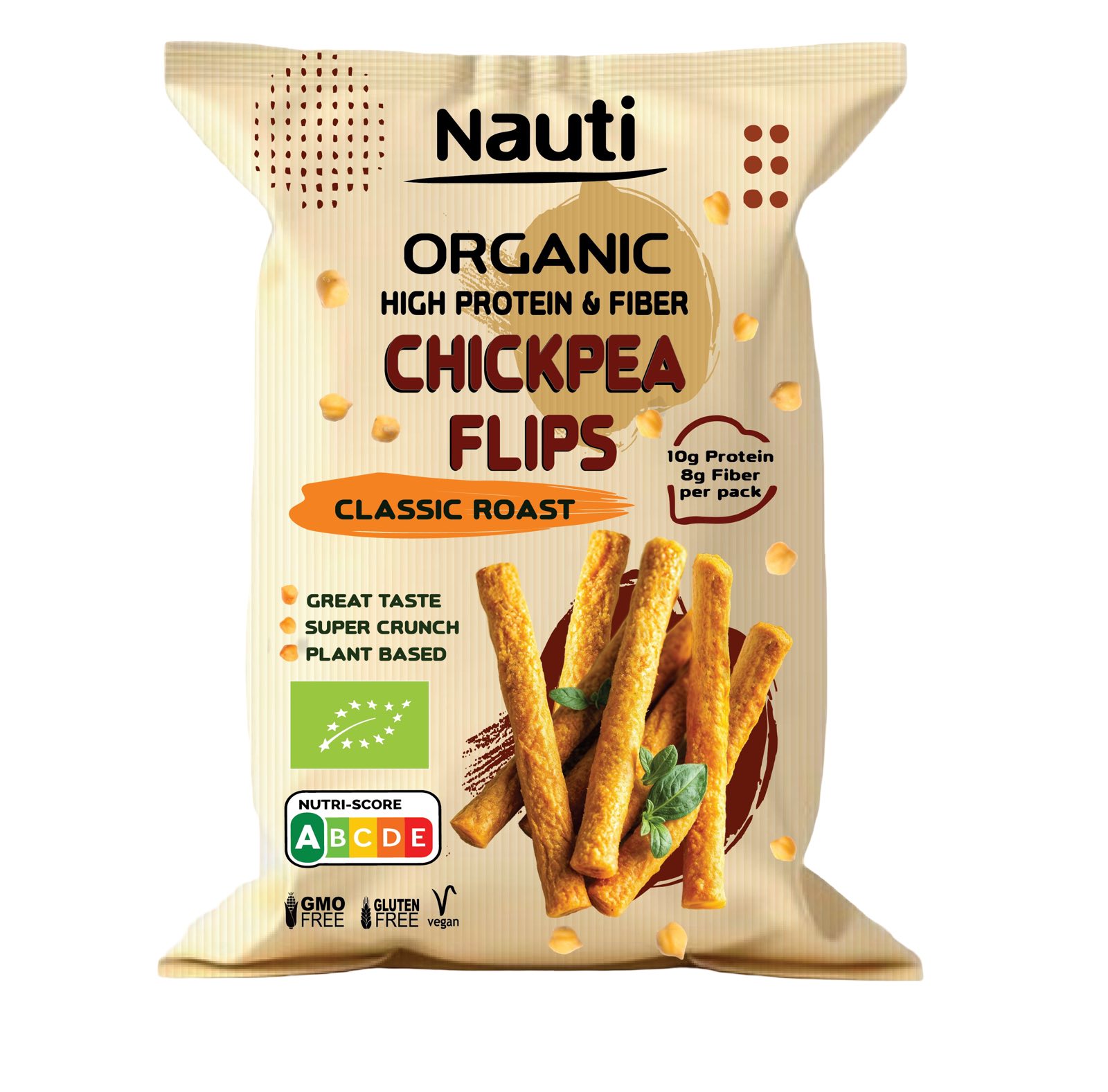 Nauti Classic Roast flips nudi bogat, prirodan ukus i savrsenu teksturu – idealan za sve koji žele zdravu užinu bogatu biljnim proteinima (10g po pakovanju) i vlaknima (8g). Bez glutena, bez veštačkih dodataka, potpuno biljni proizvod.