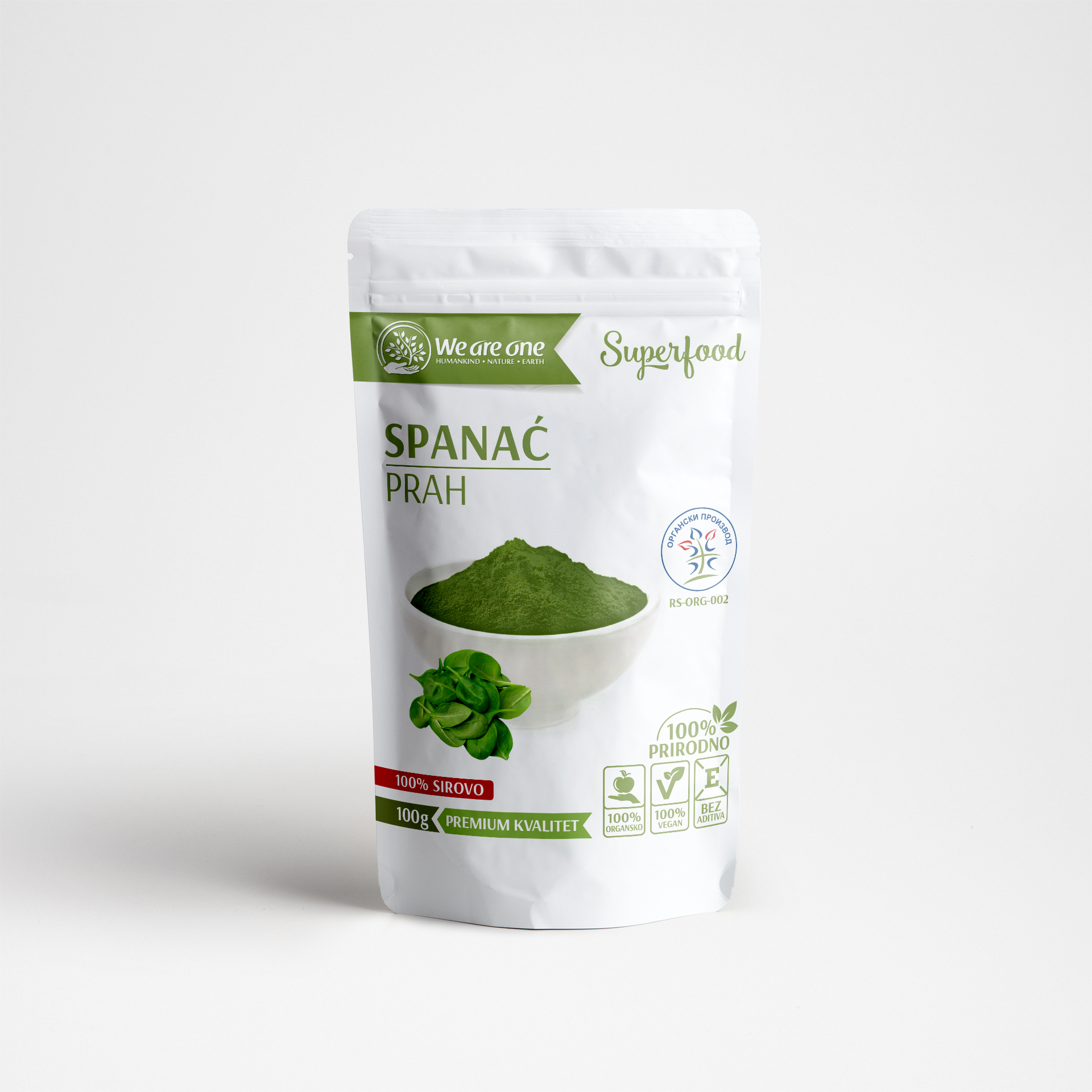 Spanać u prahu je pažljivo obrađen i sušen kako bi sačuvao sve nutritivne vrednosti ovog superzelenog povrća. Spanać je prirodan izvor vitamina (A, C, K), minerala (gvožđe, magnezijum, kalcijum) i antioksidanata, koji podržavaju zdravlje, energiju i opštu vitalnost organizma.